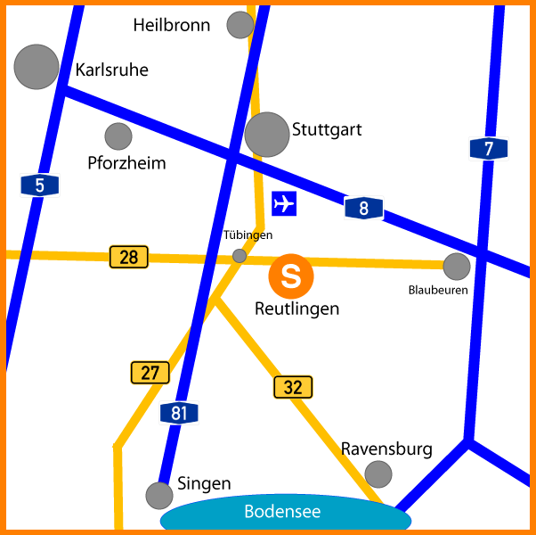 - Von der A8 am Autobahnkreuz Stuttgart abfahren auf die B 27 Richtung Tübingen / Reutlingen